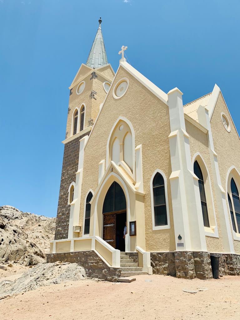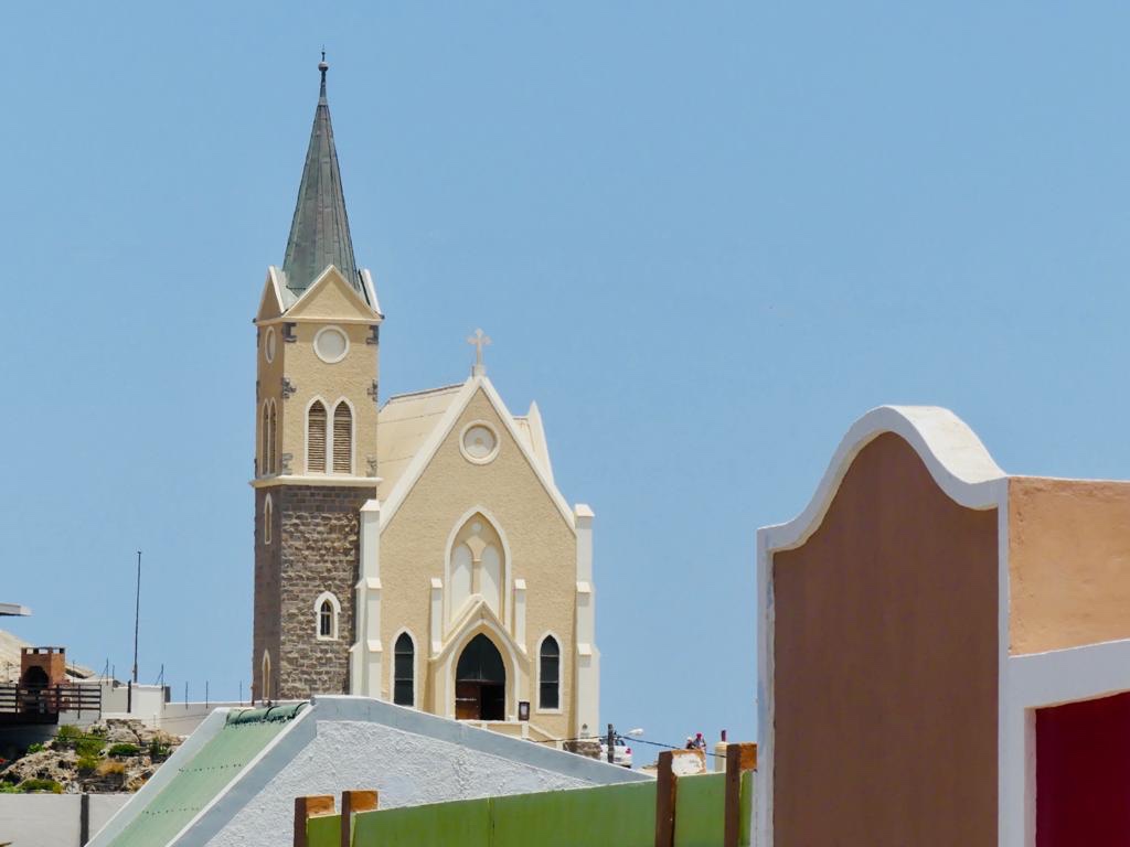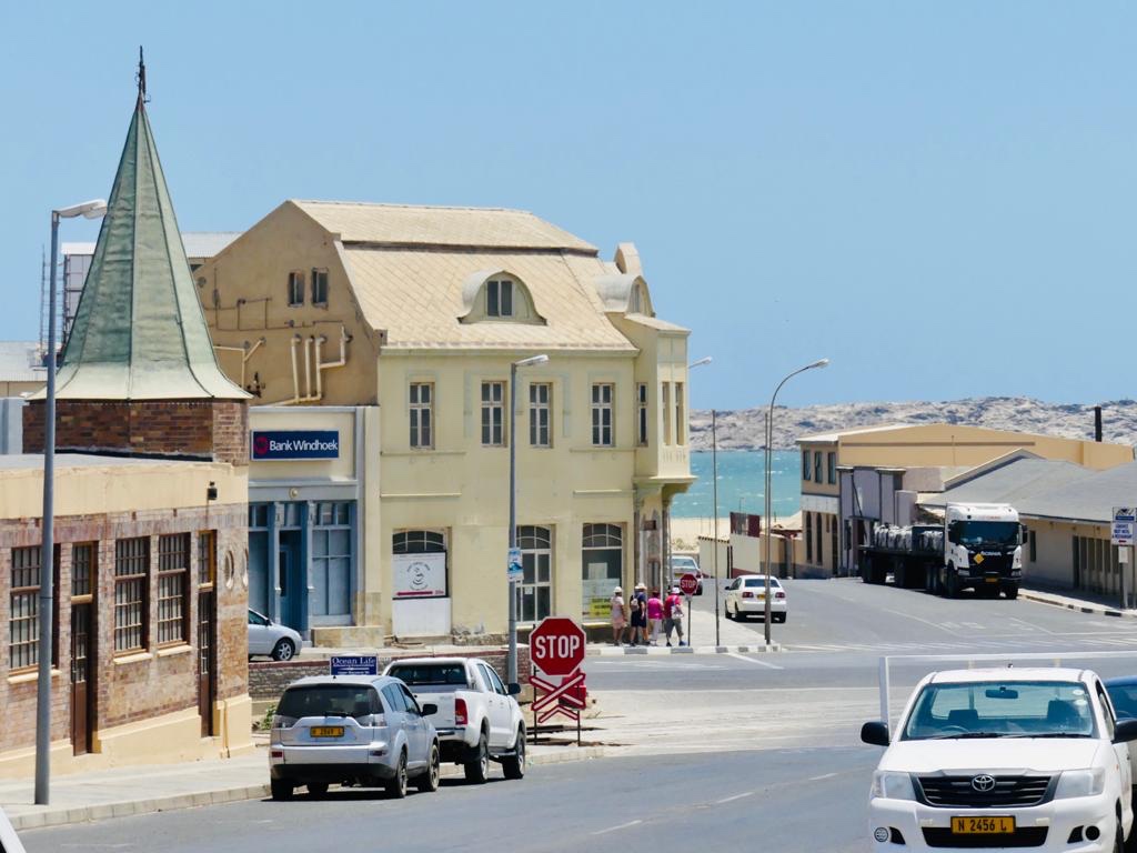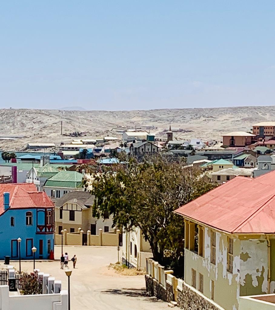 So sieht es in Lüderitz aus. Die Felsenkirche wurde 1912 auf dem Diamanten Berg erbaut. Sie wurde durch Spenden von Deutschland finanziert. Das Wohnhaus auf dem Felsen ist das Goerke Haus. Wurde 1910 für den Leutnant Hans Goerke gebaut, der nach dem Ende seiner Militärzeit Leiter der Diamanten Gesellschaft wurde. Das alte Bahnhofsgebäude ist von 1914. Wie man auf den Fotos sieht, stehen die deutschen Namen immer noch dran. Der ganze Ort ist ein Stück deutscher Kolonialgeschichte in Südwestafrika.