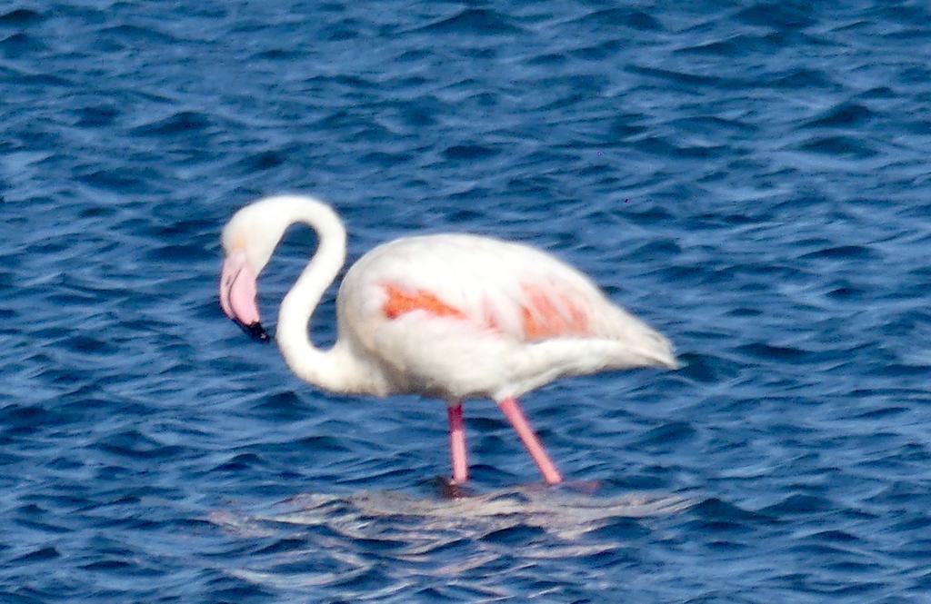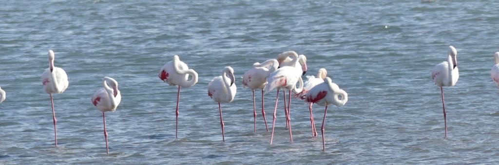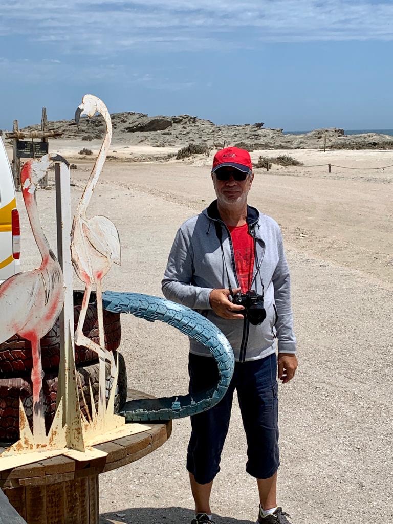 In Lüderitz mussten wir morgens um 7.00 Uhr schnell frühstücken und um 7.30 Uhr wieder zum Face Check mit Passkontrolle. Wir reisten ja von Südafrika ?? kommend in Namibia ?? ein. Ging aber schnell und dann gingen wir um 8.00 Uhr von Bord. Ich hatte von zu Hause bei Heinz Manns (Namib Offroad Excursion) die Buchtenfahrt gebucht. Man kann bei ihm aber auch noch andere Touren buchen. Z.b Geisterstadt oder Elisabeth Bucht. Da unsere Liegezeit nur bis 15.00 dauerte, war unser Ausflug genau richtig. Wir waren dieses Mal 8 Personen. Ein Ehepaar kam allerdings 40 Minuten zu spät. Haben sich zu spät zum Face Check angestellt. Wenn man einen privaten Ausflug hat, muss man zusehen, dass man als erstes durchkommt, bevor die AIDA Ausflüge dran sind. Und das haben die beiden verpennt. Unser Guide Helmut (Cousin von Heinz) sagte er wartet bis 8.30 Uhr. Aber ist dann doch noch nicht losgefahren. Da hatten die zwei Glück, dass wir um 8.40 Uhr noch da waren. Sowas ist immer doof. Aber dann ging es endlich los und wir sahen zuerst in einem See gleich hinter Lüderitz Flamingos.