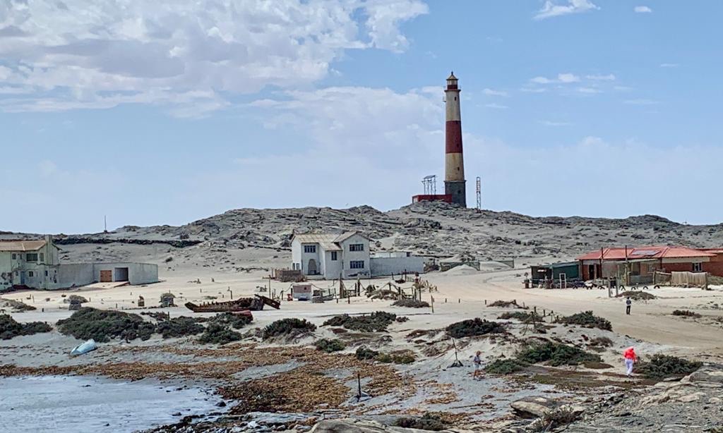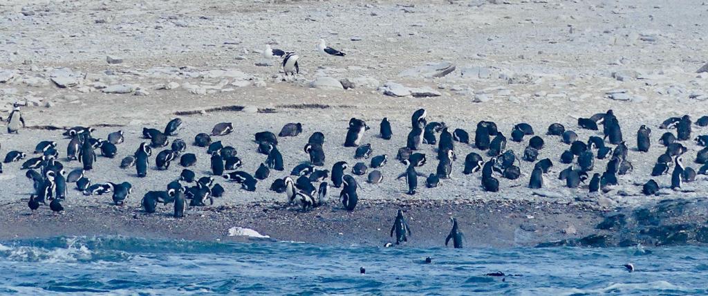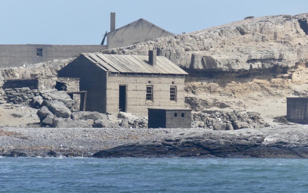 Von dort ging es weiter zur Halifax Spitze. Auf der Halifax Insel leben jetzt nur noch Afrika Pinguine. Früher lebten dort Millionen Vögel. Dann entdeckte man dass der Vogelkot wertvoller Dünger ist. Guano. !! Verwenden wir auch. Ist in jeder Tüte Blumendünger zum Beispiel. Damit konnte man gut Geld verdienen und so kam es, dass fast die ganze Insel abgekratzt wurde. Erst machten es die Holländer, dann die Engländer. Bis 1994 gehörte die Insel zu Südafrika. Danach wieder zu Namibia. Die Häuser der Arbeiter auf der Insel stehen leer.
