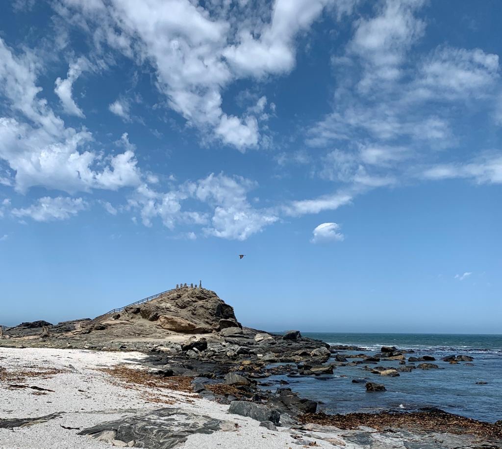 Dann ging es weiter Richtung Díaz Spitze. Vom Parkplatz geht eine Treppe hinauf zu dem Díaz Kreuz. Von dort hat man einen schönen Blick auf den gegenüberliegenden Felsen mit den Robben.