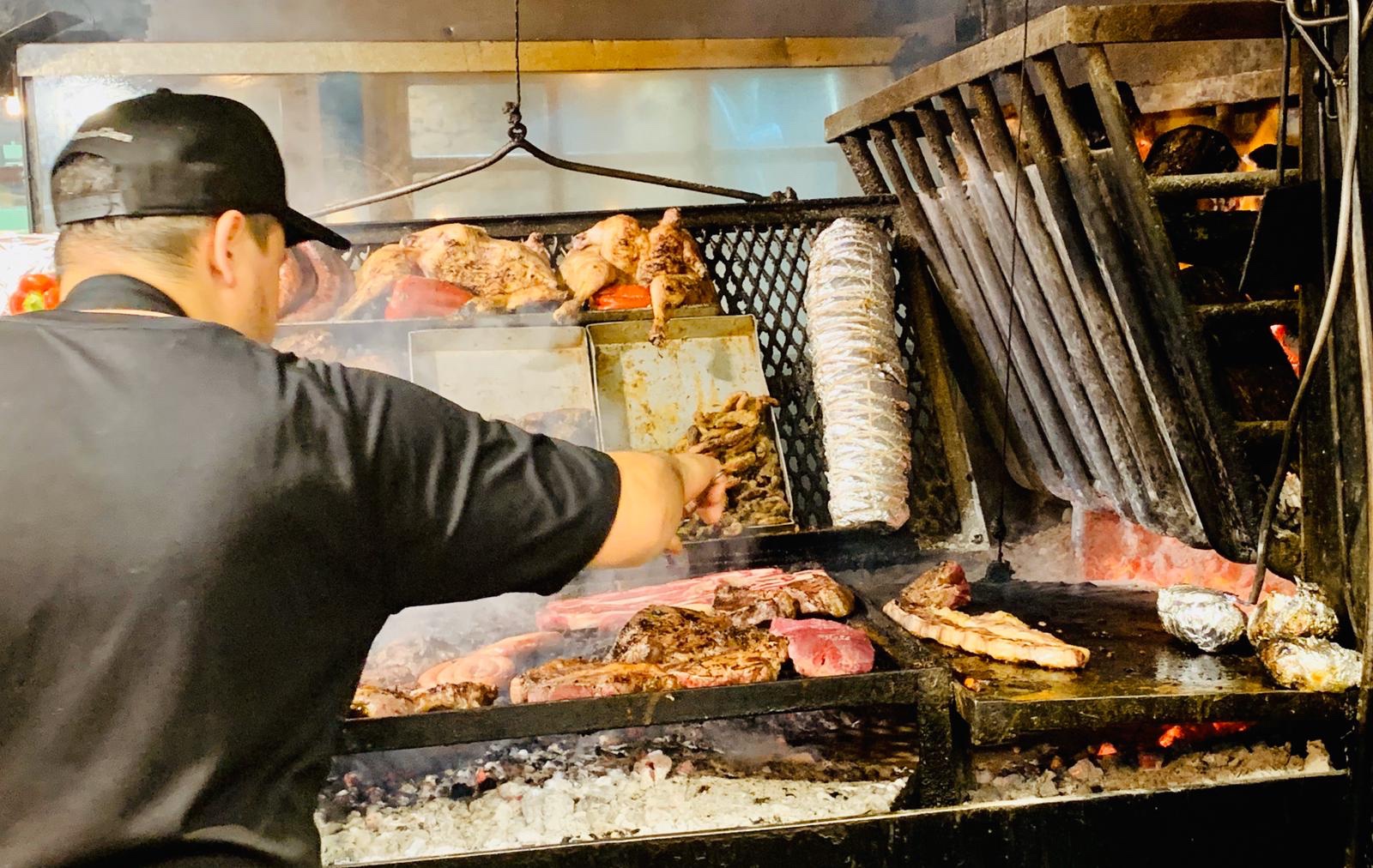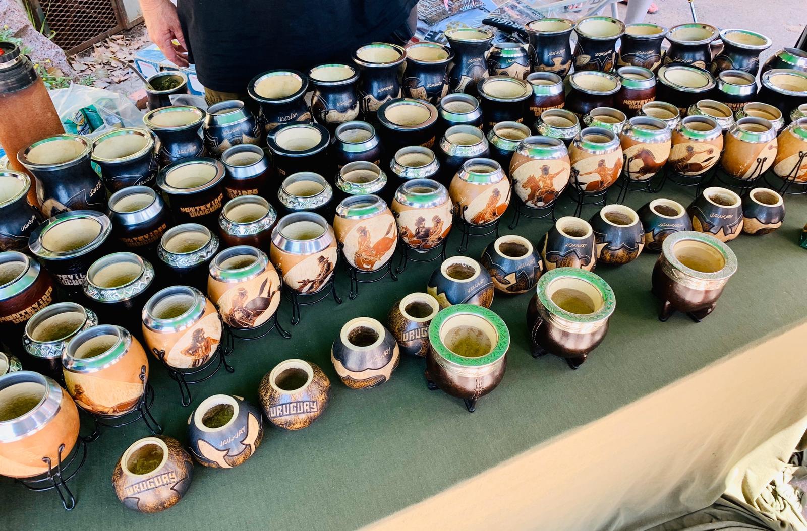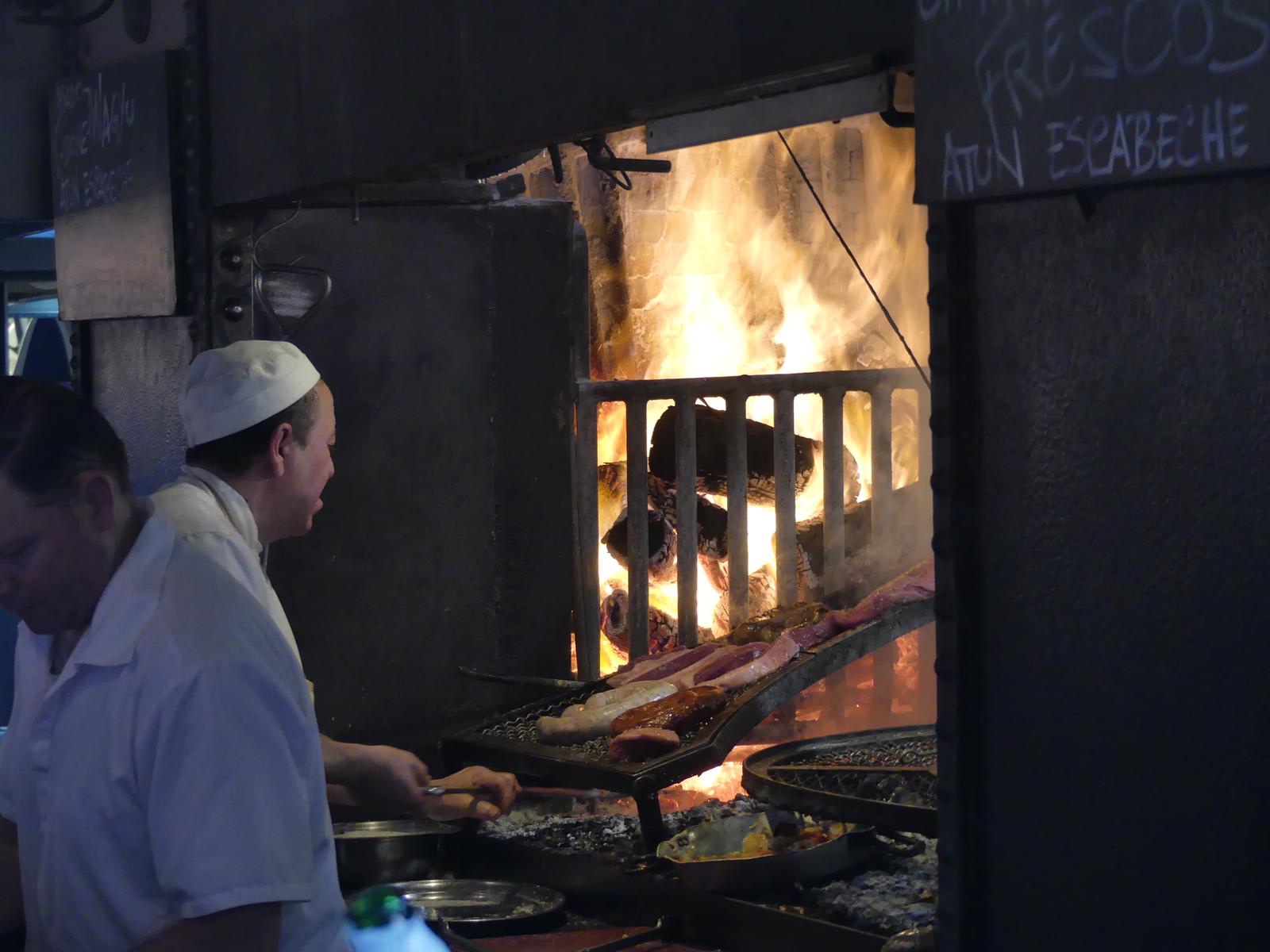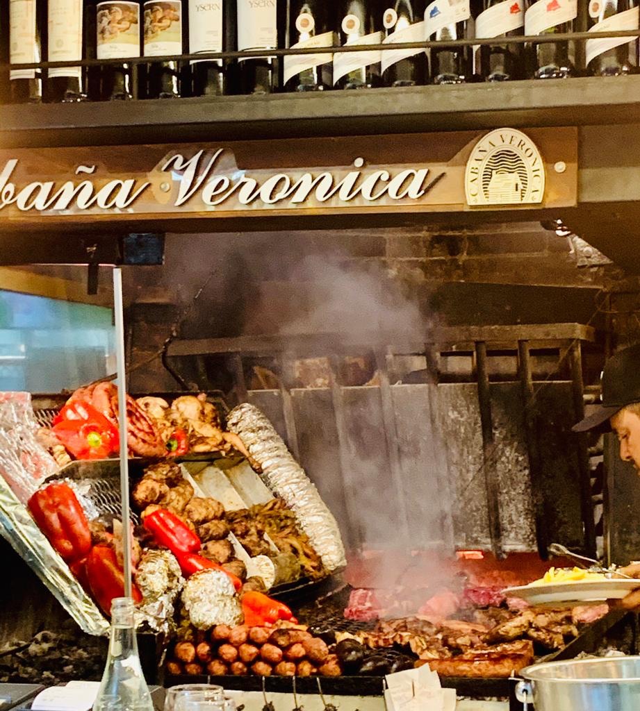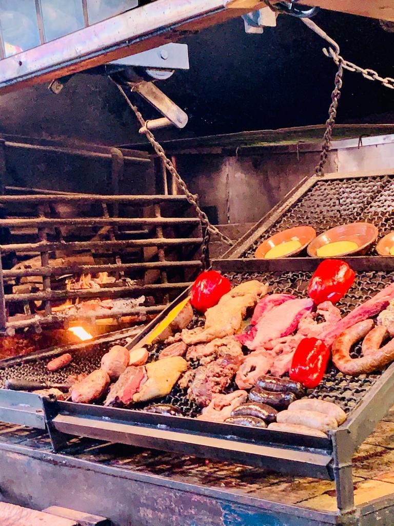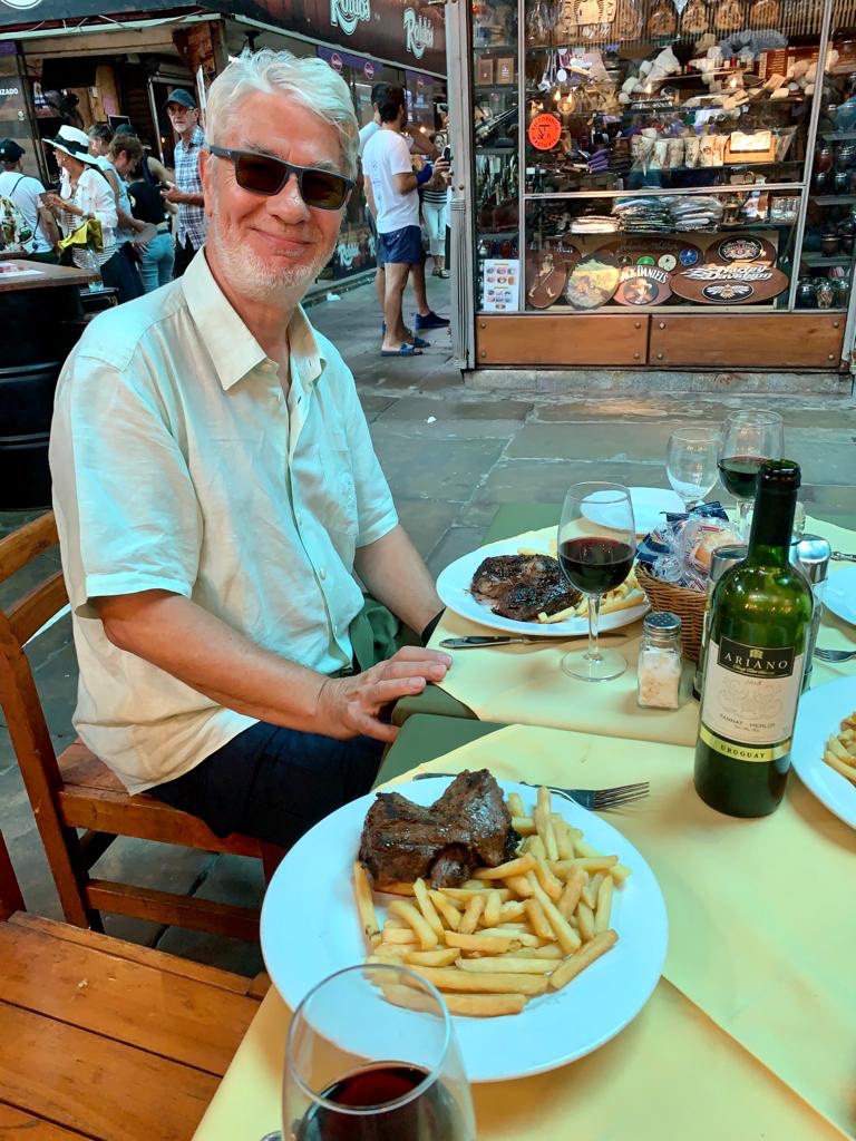 Zum Schluss waren wir an Mercado dem Puerto. Ein Markt mit riesigen Grills. Wir haben ein Rib Eye für Gerhard und Filet Steak, für mich. Auf der Karte stand Lomo. Dazu eine Flasche Rotwein (vino della Casa) sehr lecker und hast für uns zwei noch nicht mal 50 € gekostet. War ein tolles Erlebnis. Die ganze Halle voll mit diesen großen Grills. Mindestens 20 Stück und überall saßen die Leute an den Tischen. Krachend voll. Wir hatten Glück, dass der Tisch frei war. Nachdem wir die Steaks gegessen hatten, sind wir noch durch die Geschäfte geschlendert. Bisschen was gekauft und das restliche brasilianische Geld ausgeben. War gut, dass ich damit bezahlen konnte. Das brasilianische Geld und Dollar nehmen sie gerne, aber sie wollen kein argentinisches Geld.