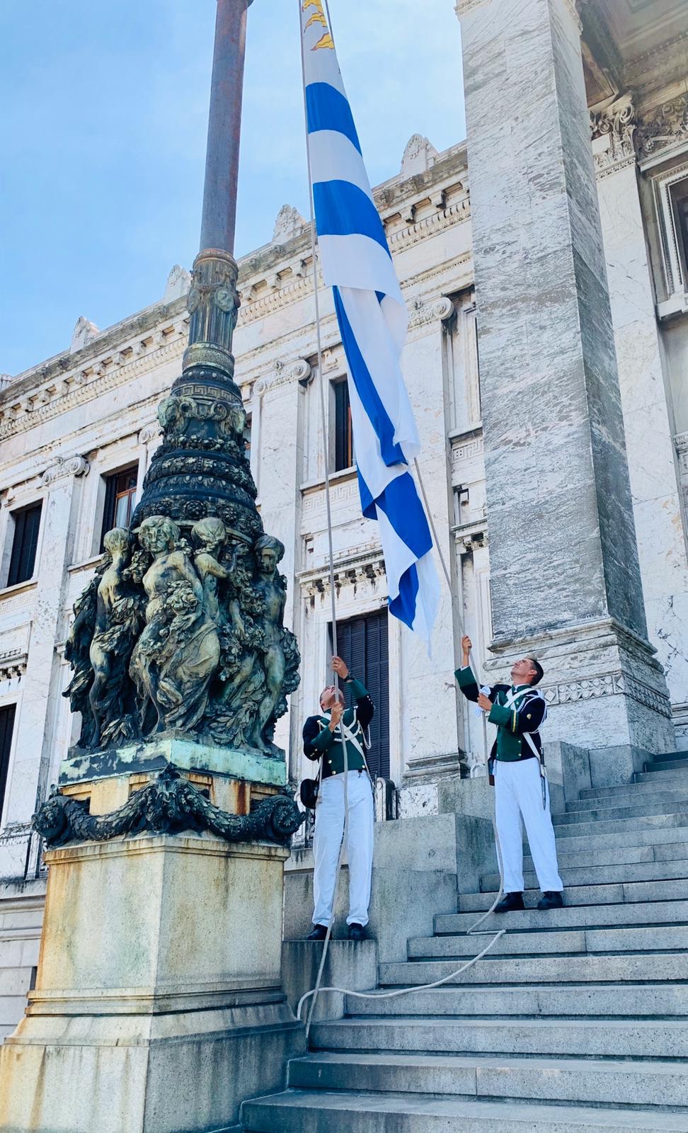 In der Stadt haben wir zuerst das Parlament angesehen. Birgit hat erzählt, dass hier demnächst gewählt wird. Geht manchmal nicht mit rechten Dingen zu.