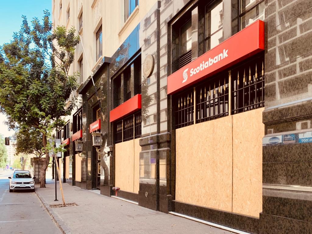 Als erstes sind wir in die Hauptstraße reingefahren und haben gesehen, wie viel kaputt geschlagen wurde und das die Supermärkte geplündert wurden und deshalb geschlossen sind. Überall sind die großen Schaufenster mit Spanplatten oder Blechen zugenagelt.