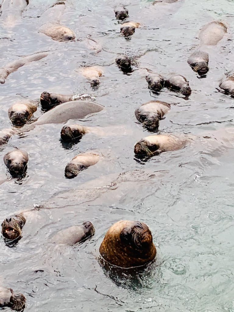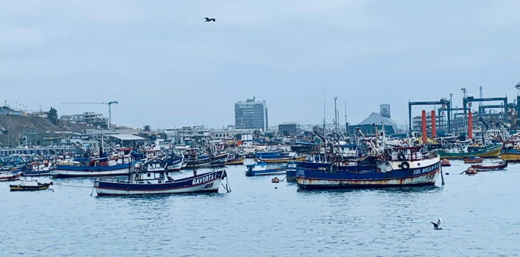 Die Fischerboote liege da nur rum. Kein einziger Fischer darf mehr rausfahren. Alles privatisiert und in der Hand von großen Firmen. Fischen alles leer. Lachse werden hier gezüchtet. Kein natürliches Vorkommen. Es gab mal ein großes Walsterben hier. Weil die Lachse mit Bakterien krank wurden und man sie ins Meer entlassen hat. Wale haben sie gefressen und sind gestorben.