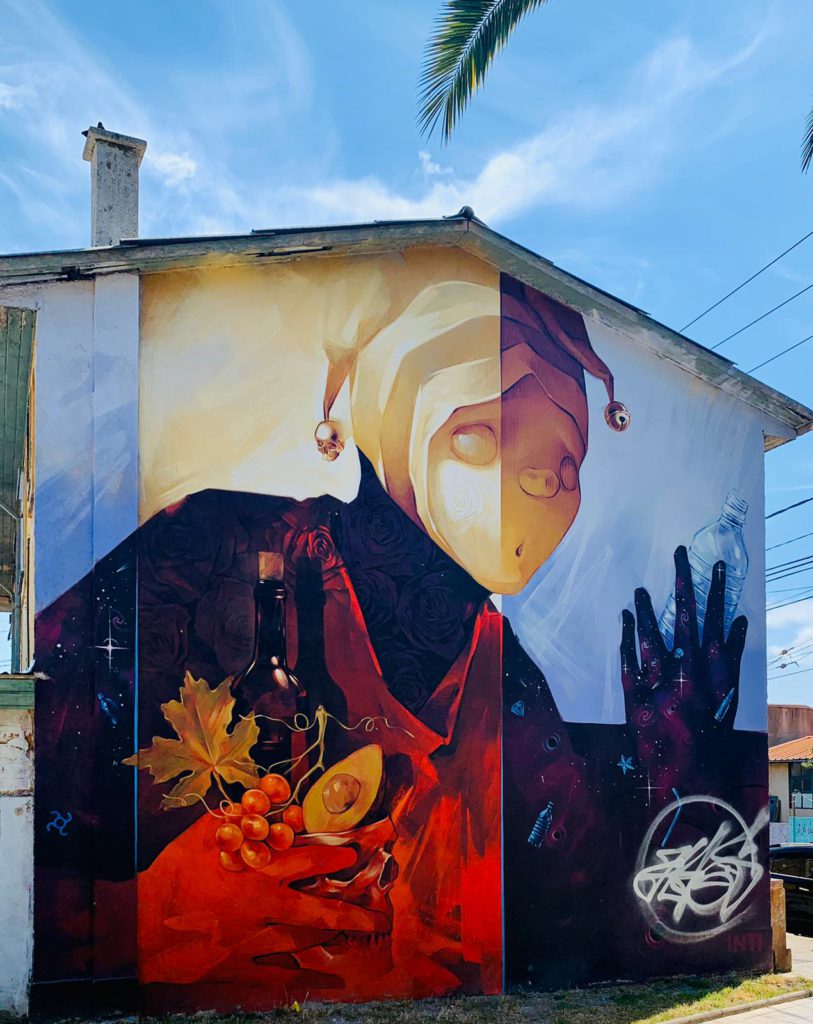 Das Graffiti ist auch eine Demonstration gegen die Wasserverschwendung. Das Land vertrocknet, aber die Konzerne entnehmen das Wasser der Flüsse, um damit die Avocado- und Wein-Felder zu bewässern. Wenn es irgendwann kein Wasser mehr gibt, braucht man auch keinen Wein und Avocado mehr. Den Protest soll das Bild ausdrücken.