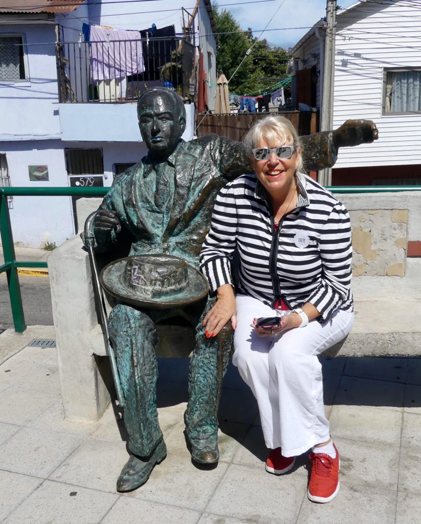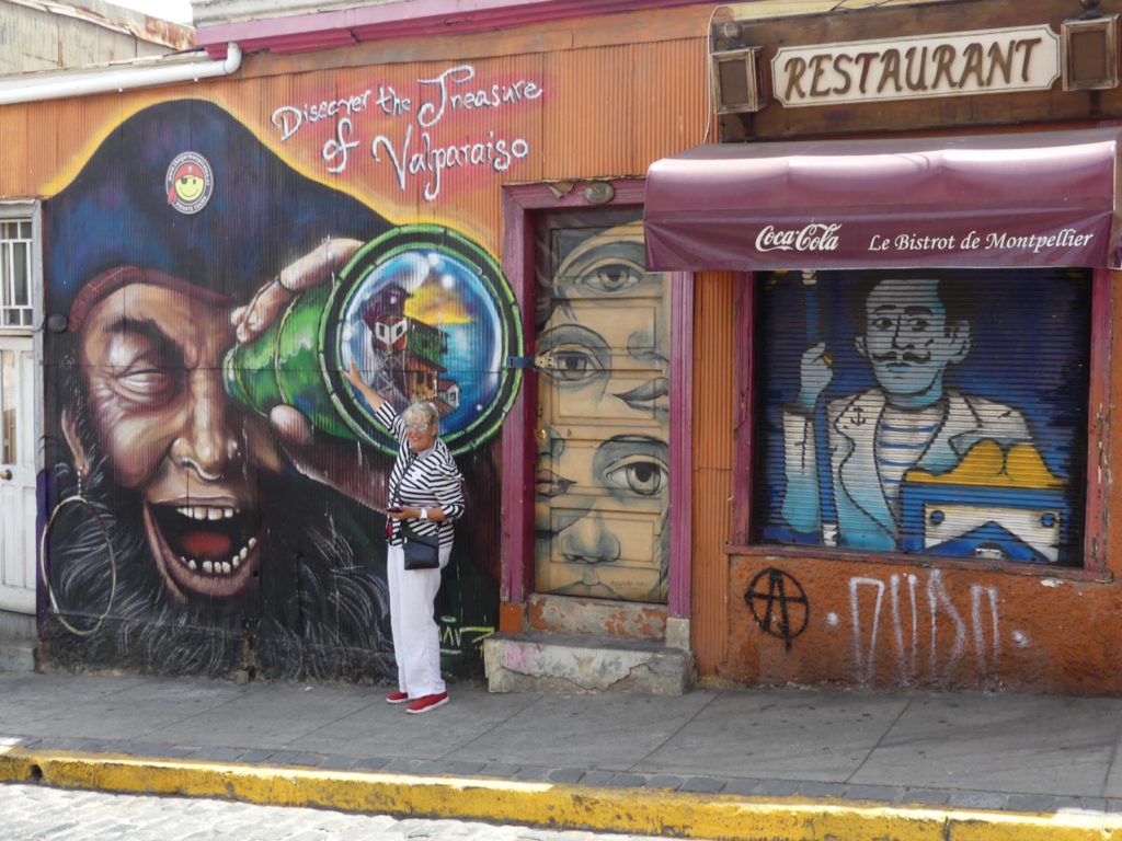 Um 9.00 Uhr pünktlich trafen wir uns vor dem Hafen Terminal. Dieses mal hatten wir Michael Arnold den Chef als Reiseleiter. Wir fuhren über die Autobahn nach Valparaiso. Es sind ca. 100 km und wir brauchten etwas mehr als eine Stunde. In Valparaiso fuhren erstmal durch die Hauptstraße. Da dort soviel kaputt war, sind wir gar nicht erst ausgestiegen, sondern gleich auf einen der 44 Hügel gefahren. Von den 44 Hügel gibt es nur 4, auf die man fahren kann. Alles andere ist zu gefährlich. Einige sehen aus wie die Favelas in Rio. Vieles wurde illegal gebaut. Aber das, was uns Michael gezeigt hat, waren die schönen Seiten von Valparaiso.