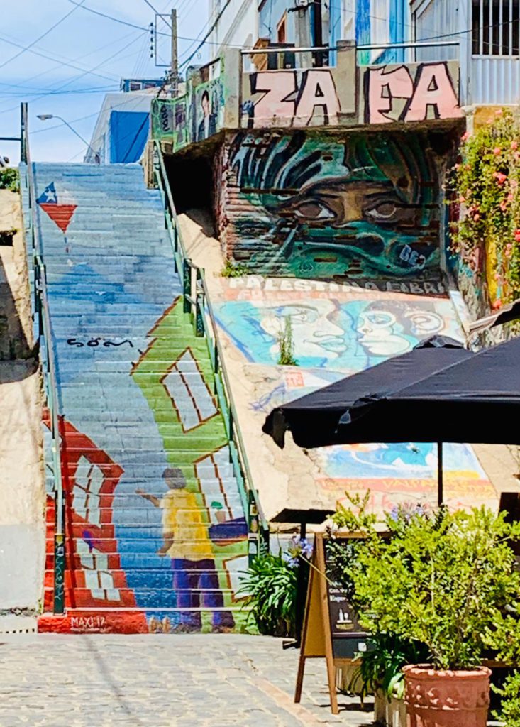 Nach dem Friedhof sind wir eine schöne Straße runtergelaufen. Rechts und links waren die Häuser und die Treppen bemalt. Eins schöner wie das andere.